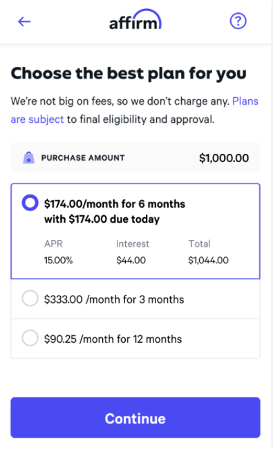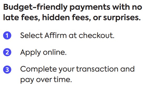 Affirm does not charge late fees or prepayment fees. Some plans include interest, while others are interest-free. You’ll always see the total cost upfront before you confirm your purchase.