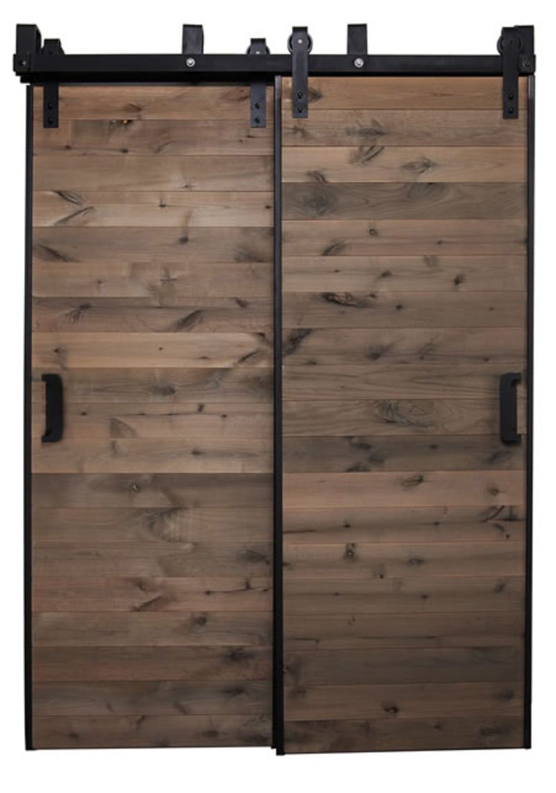 NOTICE: Bi Parting systems come with 2 doors and 4 barn door hardware hangers by default.