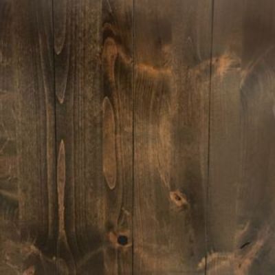 The Dark Walnut Stain preserves the unique details on each piece of knotty alder. The stain sinks into the grooves and knots in the wood, making those parts appear darker. The Dark Walnut stain is a light stain with grey undertones. Applied by our expert painters.