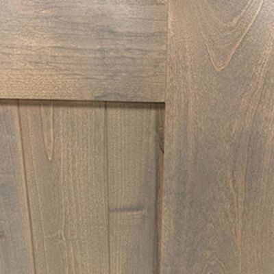The Barn Grey stain is painted over sanded knotty alder. Choosing the Barn Grey finish preserves the integrity of the wood while maintaining your color scheme. The stain sinks into the grooves and lines of the wood, making some areas appear darker. Our expert painters apply each coat by hand.