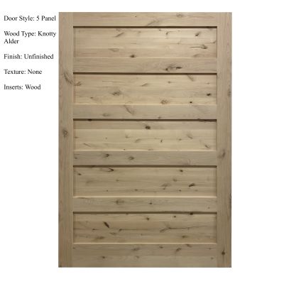 The Unfinished Stain Grade is a sanded knotty alder wood. Each piece of knotty alder has its own unique knots and grooves. Choosing the Unfinished Stain Grade allows you to appreciate the raw details of this wood.