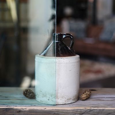 The Dairy is painted using a light grey and white. A base coat of grey is applied and white paint is speckled over the steel. The steel is then carefully distressed for a truly unique piece.