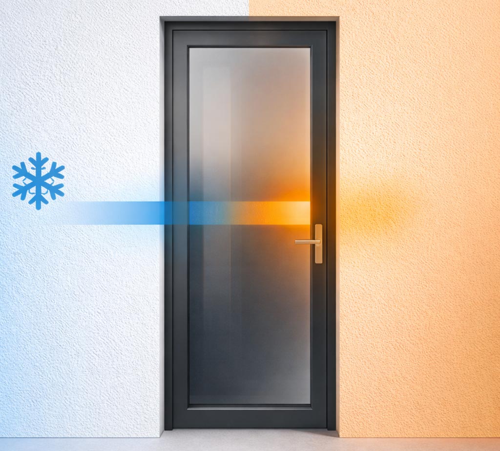 Metal is highly conductive. When a door frame is built as one continuous piece from the exterior of the home to the interior, it creates a direct path for heat transfer. Cold air outside doesn’t need a visible gap or draft to make its way in. The temperature moves through the material itself and settles on the interior side of the frame.