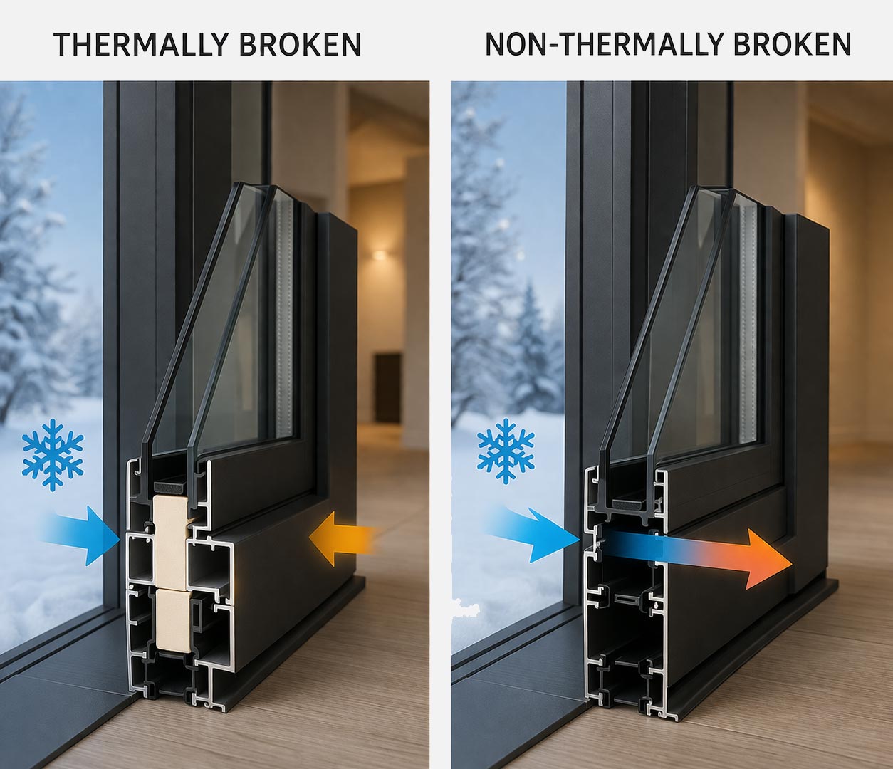 If that frame is built as one continuous piece, there’s nothing to interrupt that movement. The outside and inside are directly connected through the same material, so the temperature follows that path. Over time, the interior surface starts to reflect what’s happening outside.
